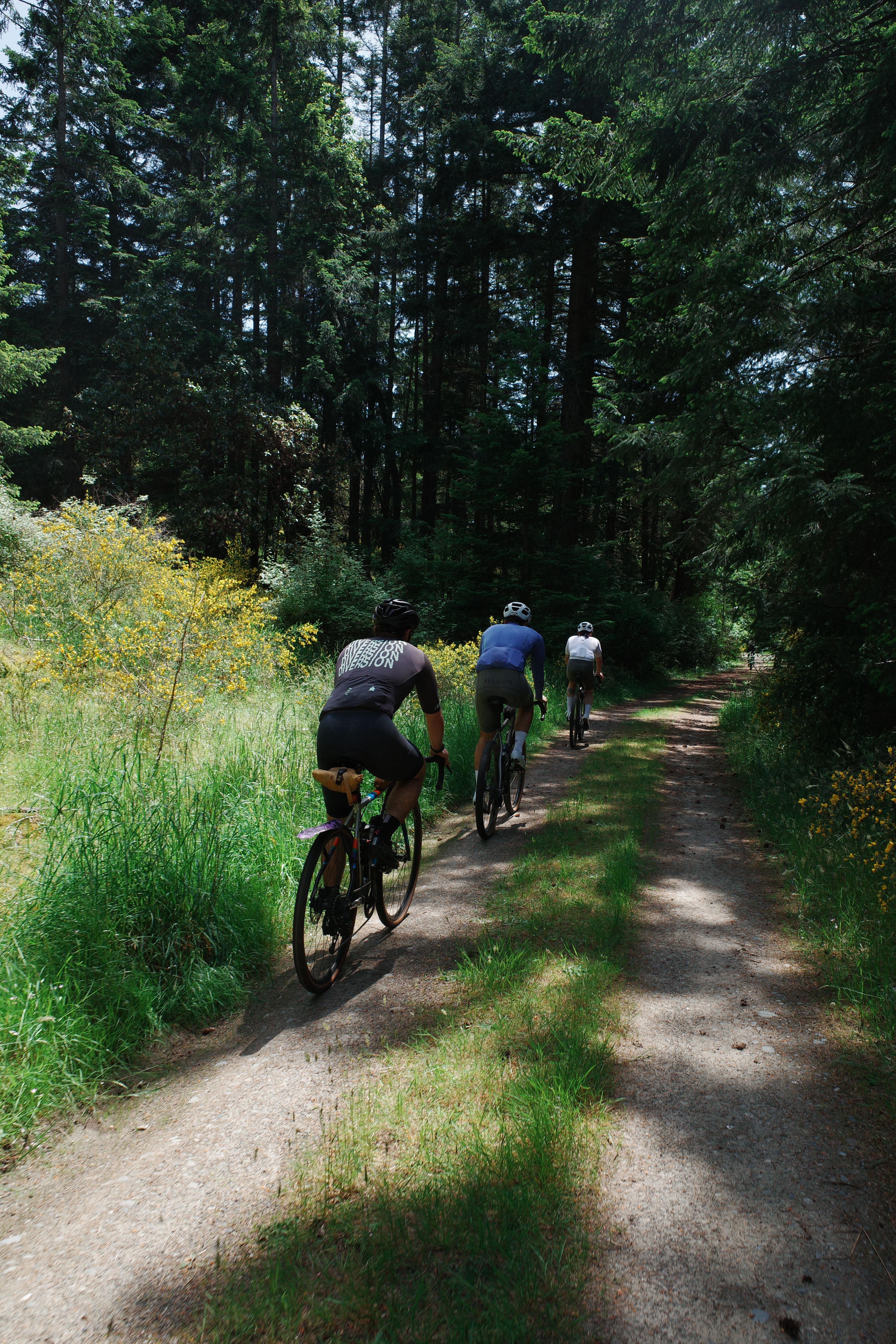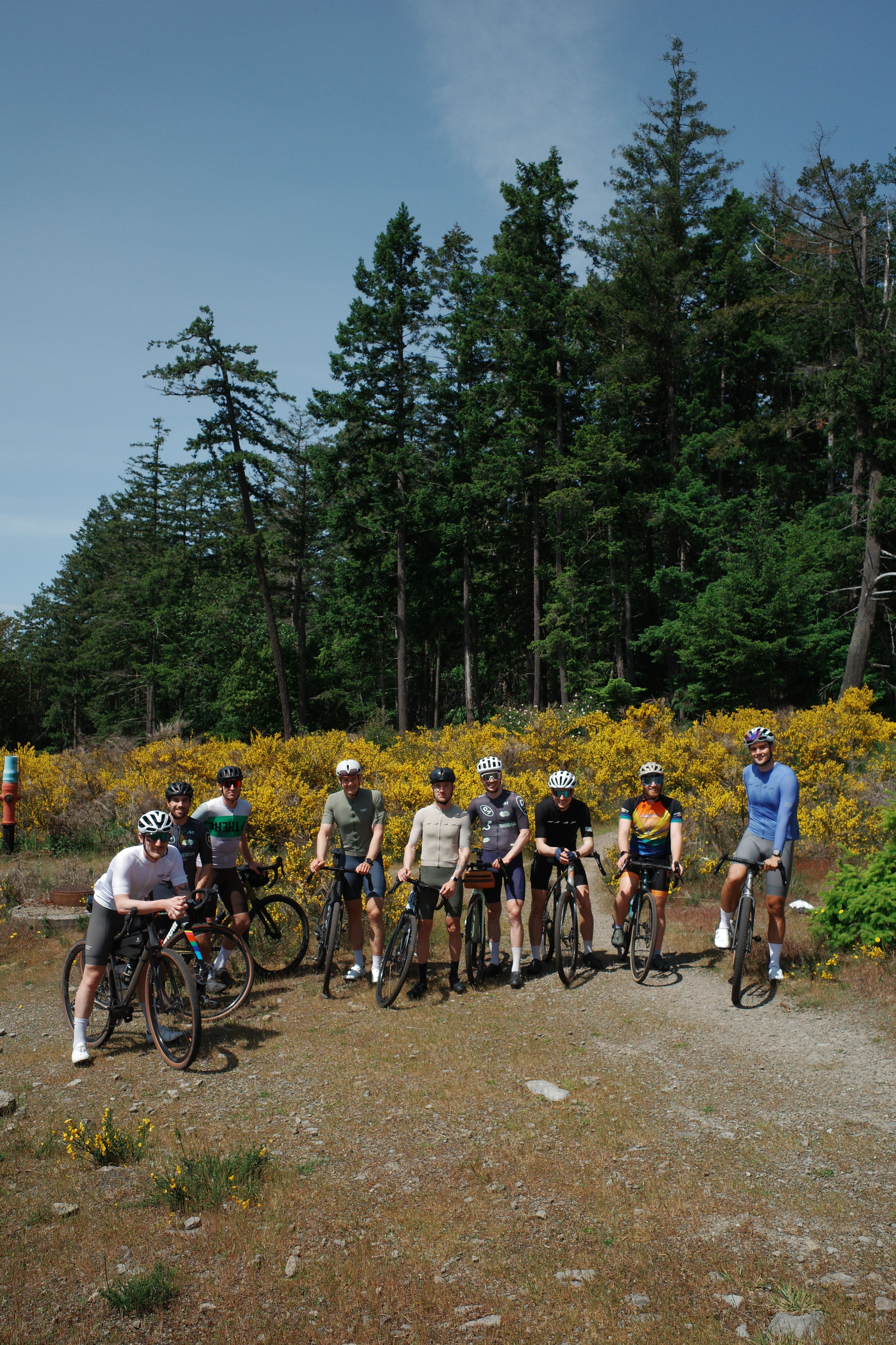 Rolling out from Fulford Harbour, the crew pedaled past farms and thick forest canopies, winding their way toward the coastal roads and stunning ocean vistas. Once inland, the gravel began—and so did the real fun.