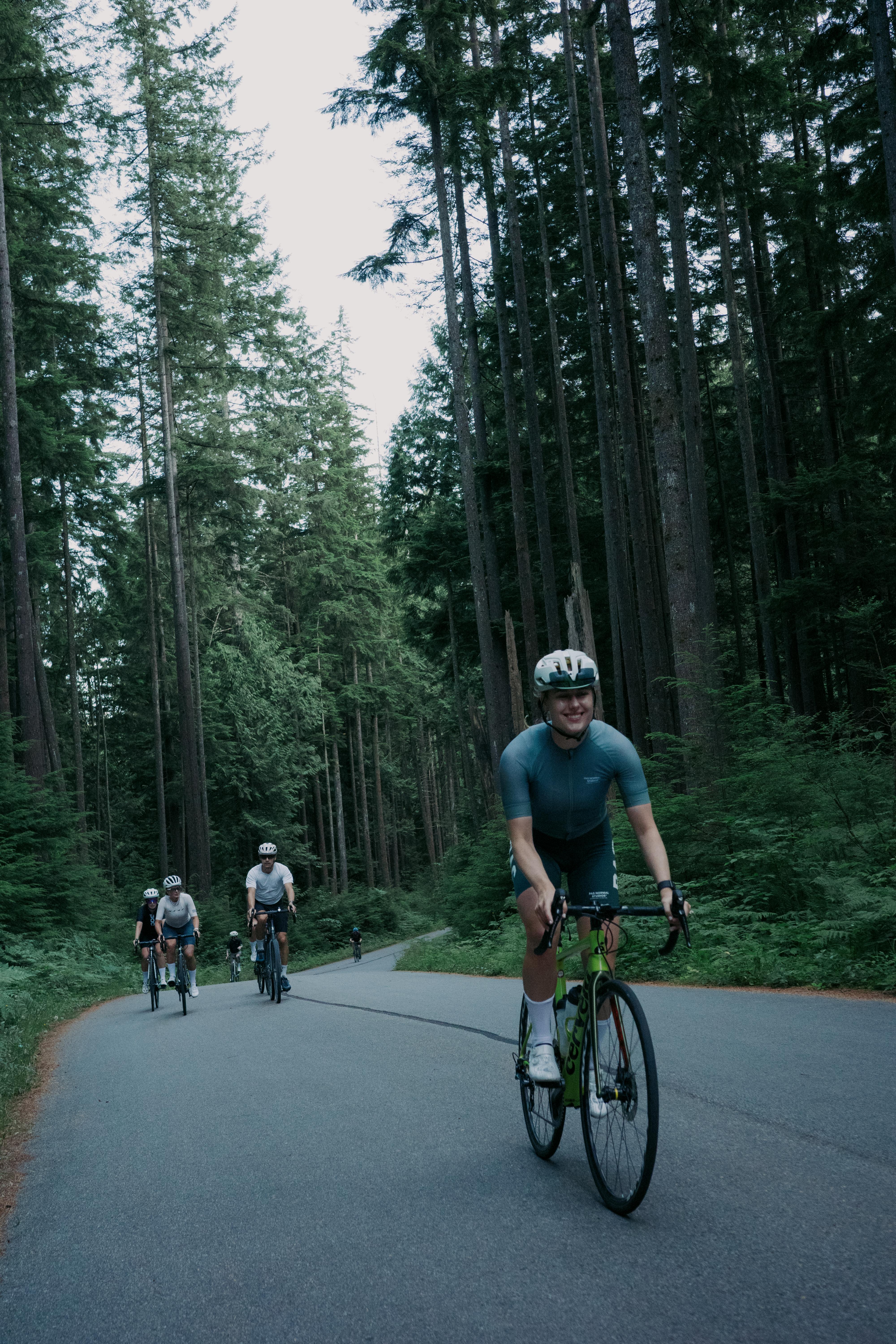 We wanted a route that felt uniquely Vancouver. One that balanced natural beauty with an enjoyable riding experience for a big group. The Seymour Demonstration Forest checked every box. The park offers a 20-kilometre out-and-back ride that gives quiet, car-free roads, rolling hills, and lush forest surroundings, with just the right mix of climbs, descents, and social cruising.